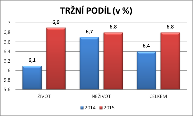 ČSOB Pojišťovna zvýšila v roce 2015 svůj tržní podíl. Aktuálně činí 6,8%, což je o 0,4% více než v roce předešlém. Přepočítáno na předepsané pojistné je to skok vzhůru o půl miliardy, ze 7,4 miliardy korun v roce 2014 na 7,9 miliardy v roce 2015. Kvalitního výsledku dosáhla společnost i v oblasti hospodářského výsledku, který činí za uplynulý rok zisk ve výši 716 milionů korun.